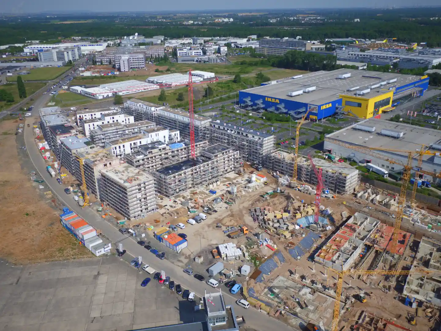 Eine besondere Herausforderung stellte die Abwicklung des prognostizierten zusätzlichen Verkehrsaufkommens dar, wobei eine größtmögliche Ausnutzung der Baufelder berücksichtigt werden musste. Die leistungsgerechte Abwicklung der neuen Verkehre konnte unter anderem durch eine wesentliche Verbesserung der ÖPNV-Anbindung, insbesondere durch die Führung einer neuen Stadtbahntrasse durch das Plangebiet, erreicht werden. Auch die Radverkehre fanden im Plangebiet besondere Berücksichtigung. Die Straßenquerschnitte variieren von 4,00 m breiten Wohnwegen bis hin zu 30,00 m breiten Haupterschließungsstraßen, einschließlich der parallel verlaufenden Stadtbahntrasse.