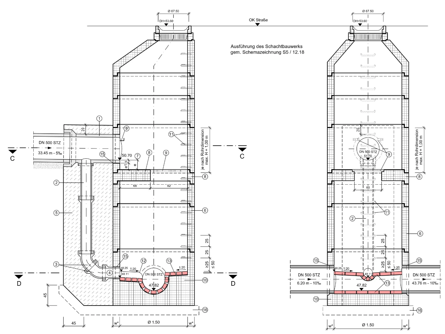 • Hydraulische und hydrodynamische Berechnung eines Mischwasserkanalnetzes