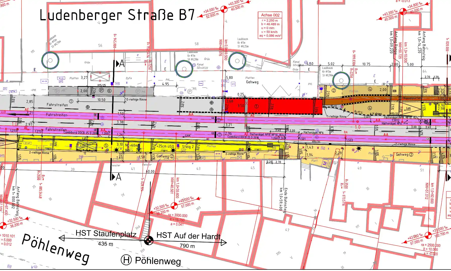 Die Überprüfung und Optimierung der Trassierung zählten ebenfalls zu den Aufgaben von IPL CONSULT, sodass auch umfangreiche Teile der Leistungsphase 3 erbracht werden mussten.